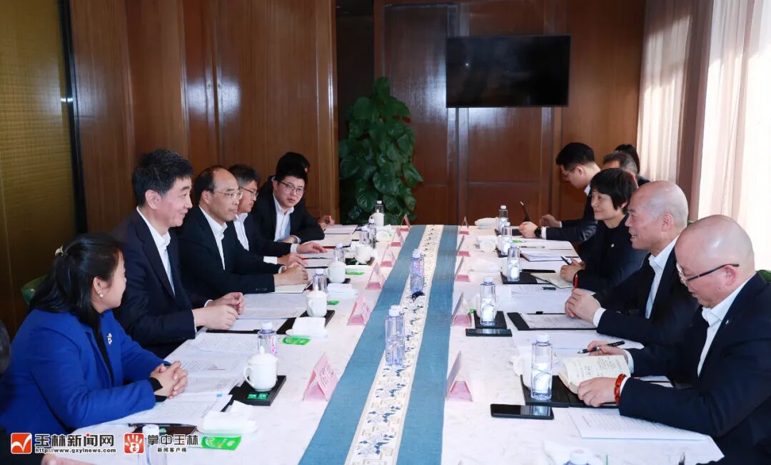 玉林市委书记王琛、市长张惠强在南宁市与华友控股集团董事长陈雪华一行座谈。